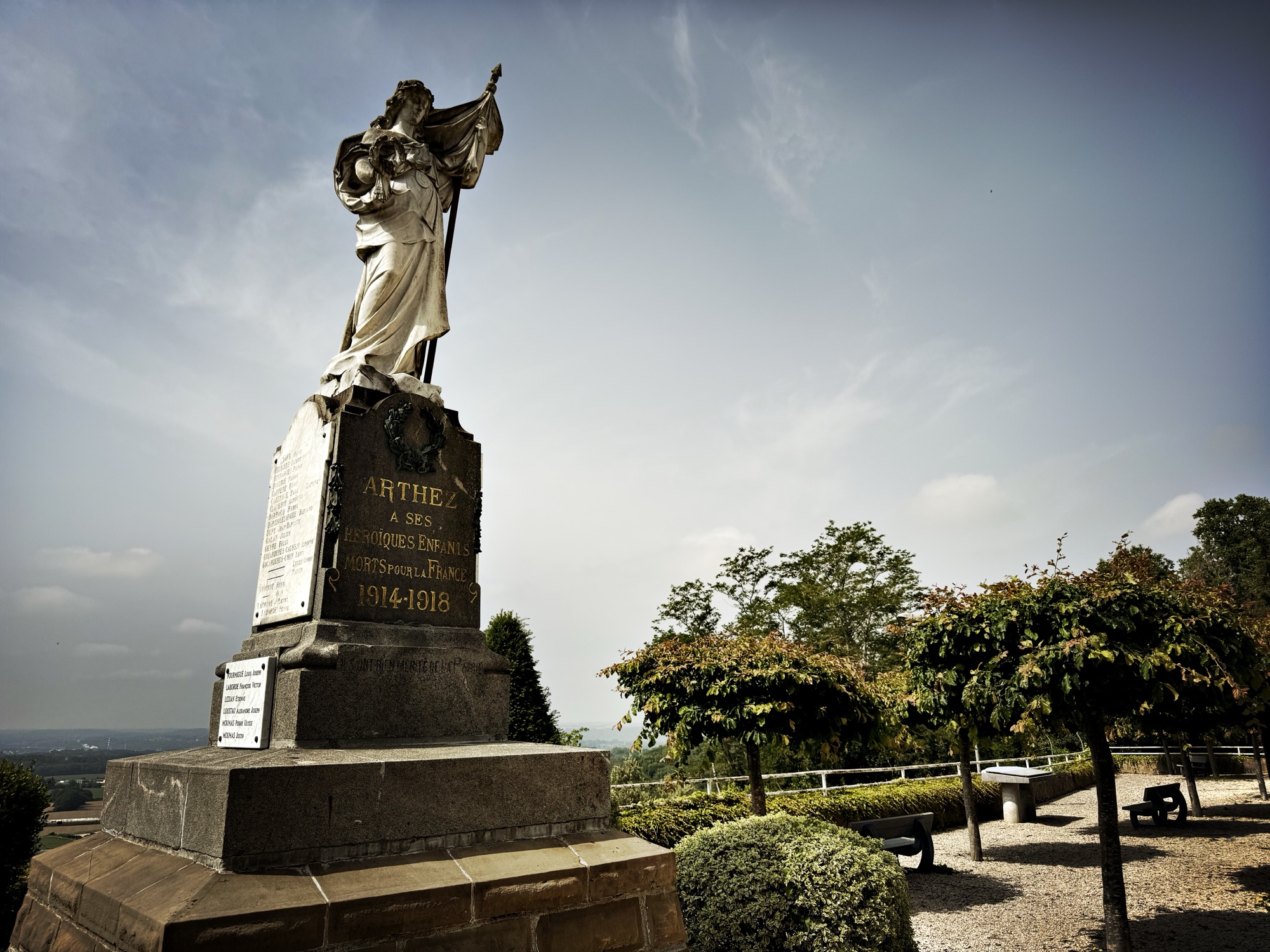 Monument to the fallen with a view over the valley to the Pyrenees