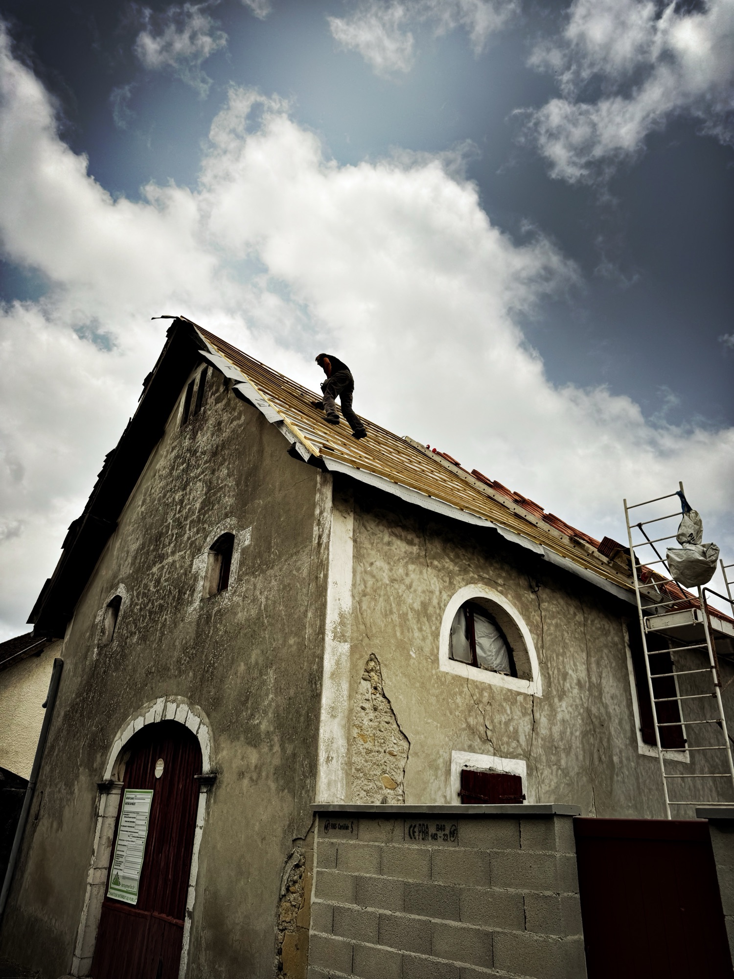 Bloke fixing a roof – wouldn’t pass muster in Aus