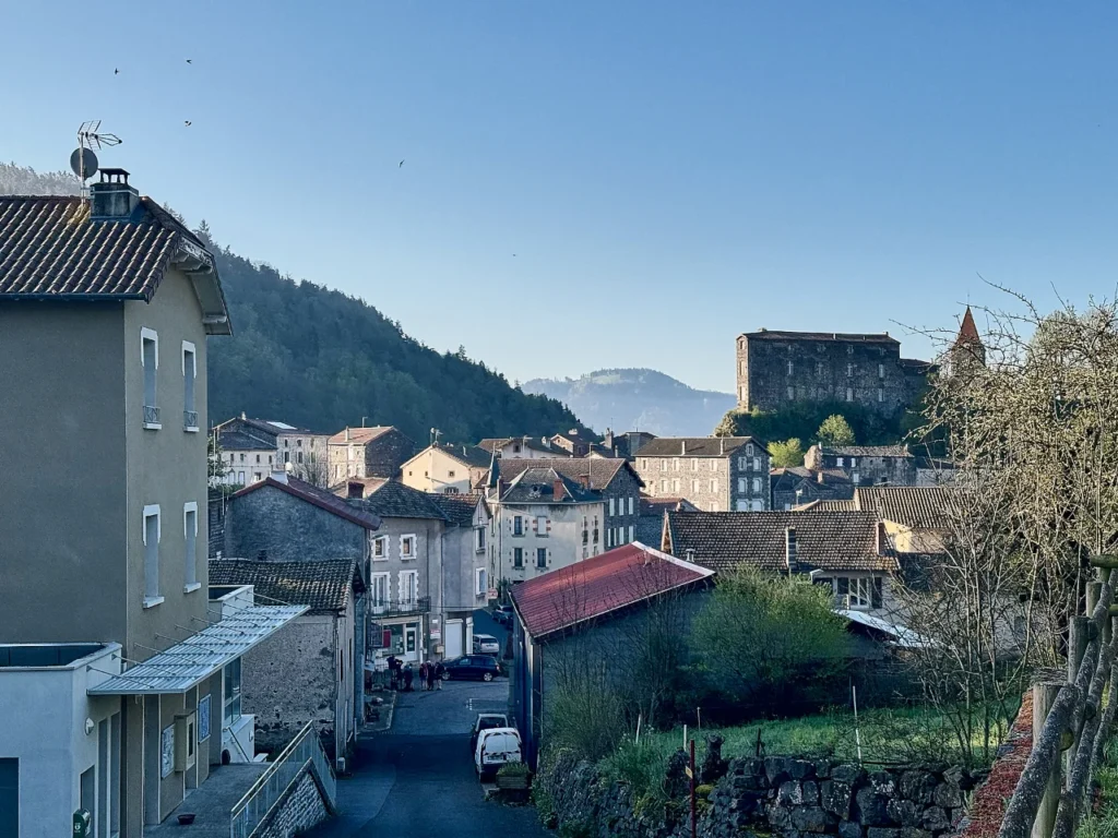 Today it was a good walk on easy paths (except for the big hill after Monistrol d’Allier). The destination, through more beautiful countryside, farms with healthy and happy cattle was Sauges.